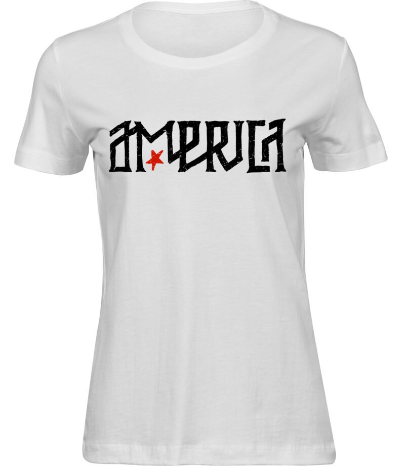 Stylisches Freizeit Frauen T-Shirt “AMERICA SCHRIFTART” – aus hochwertigem 100% Baumwolle Stoff.