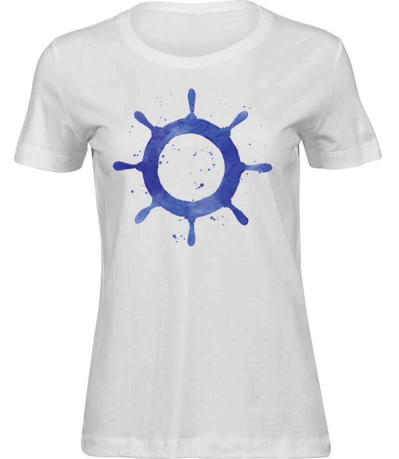 Stylisches Freizeit Frauen T-Shirt “AQUA SCHIFFSLENKRAD” – aus hochwertigem 100% Baumwolle Stoff.