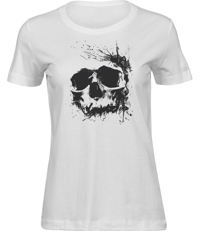 Stylisches Freizeit TShirt für Frauen “BESCHÄDIGTER SCHÄDEL” – aus hochwertigem 100 % Baumwolle Stoff.