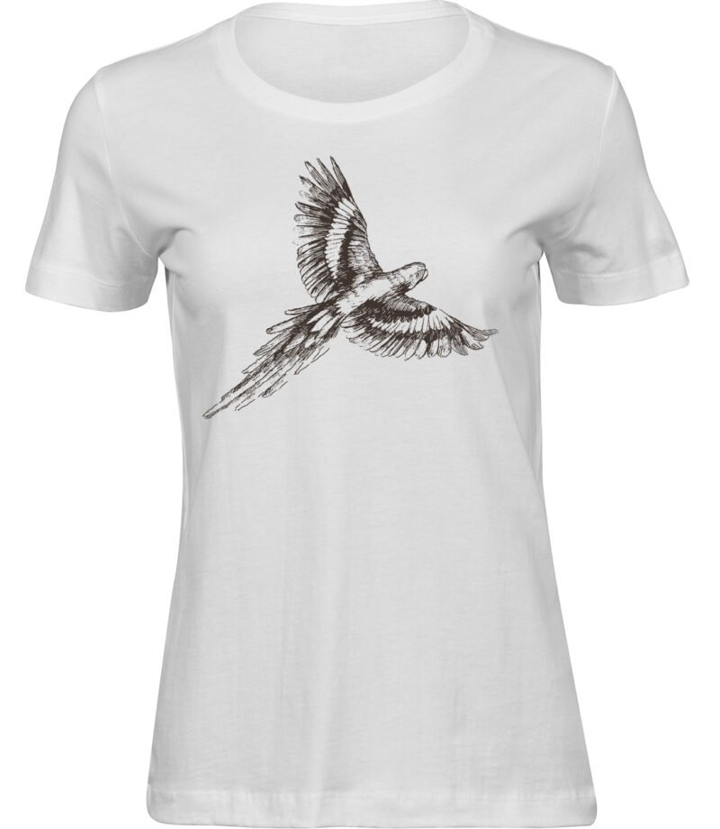 Stylisches Freizeit Frauen T-Shirt “FLIEGENDER PAPAGEI” – aus hochwertigem 100% Baumwolle Stoff.