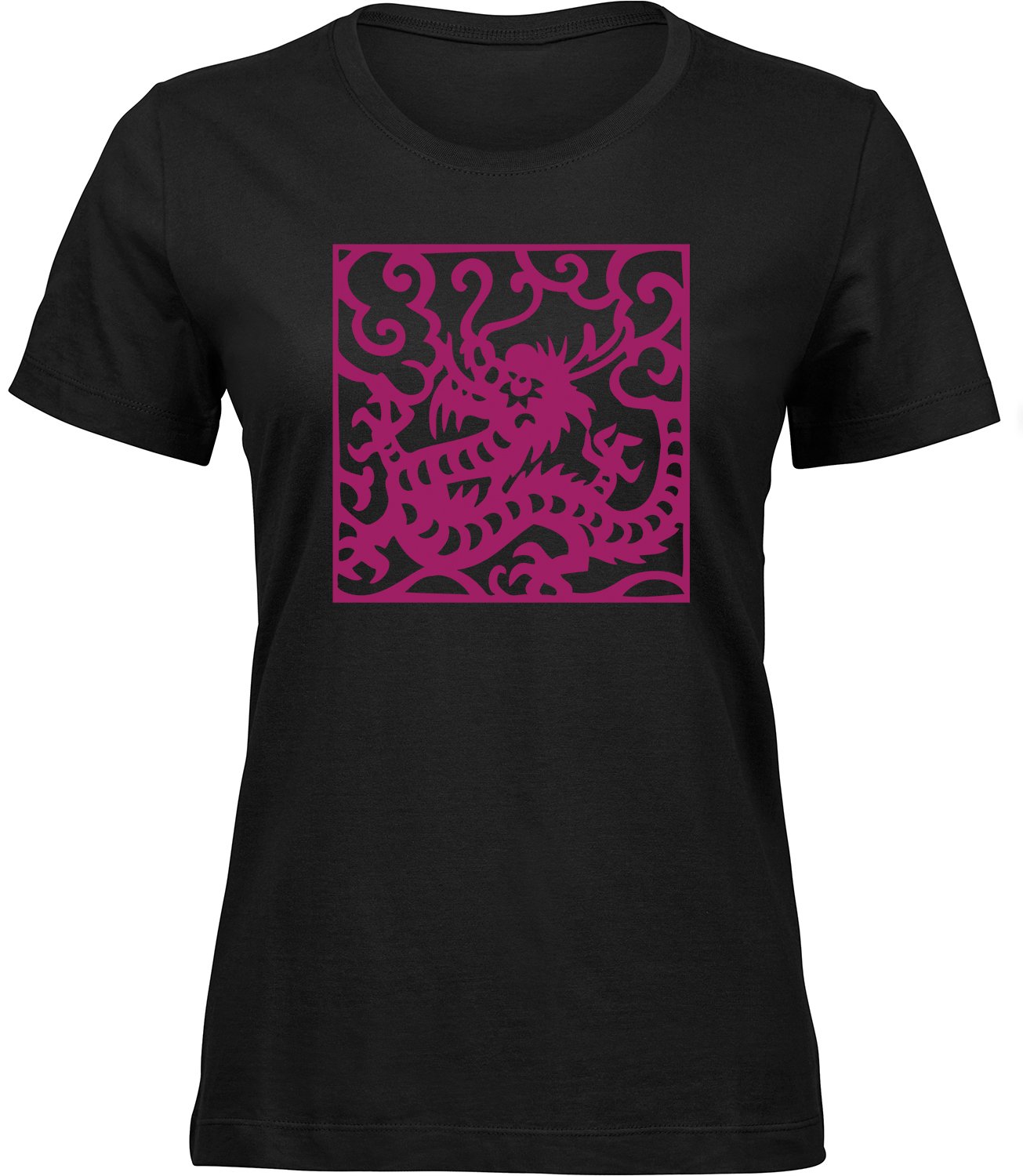 Stylisches Freizeit Frauen TShirt “GERAHMTER DRACHE” – aus hochwertigem 100% Baumwolle Stoff.