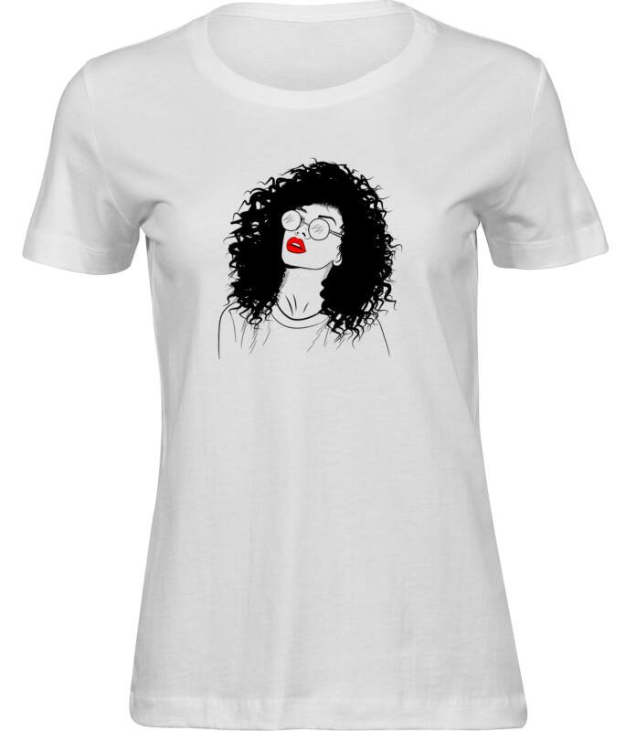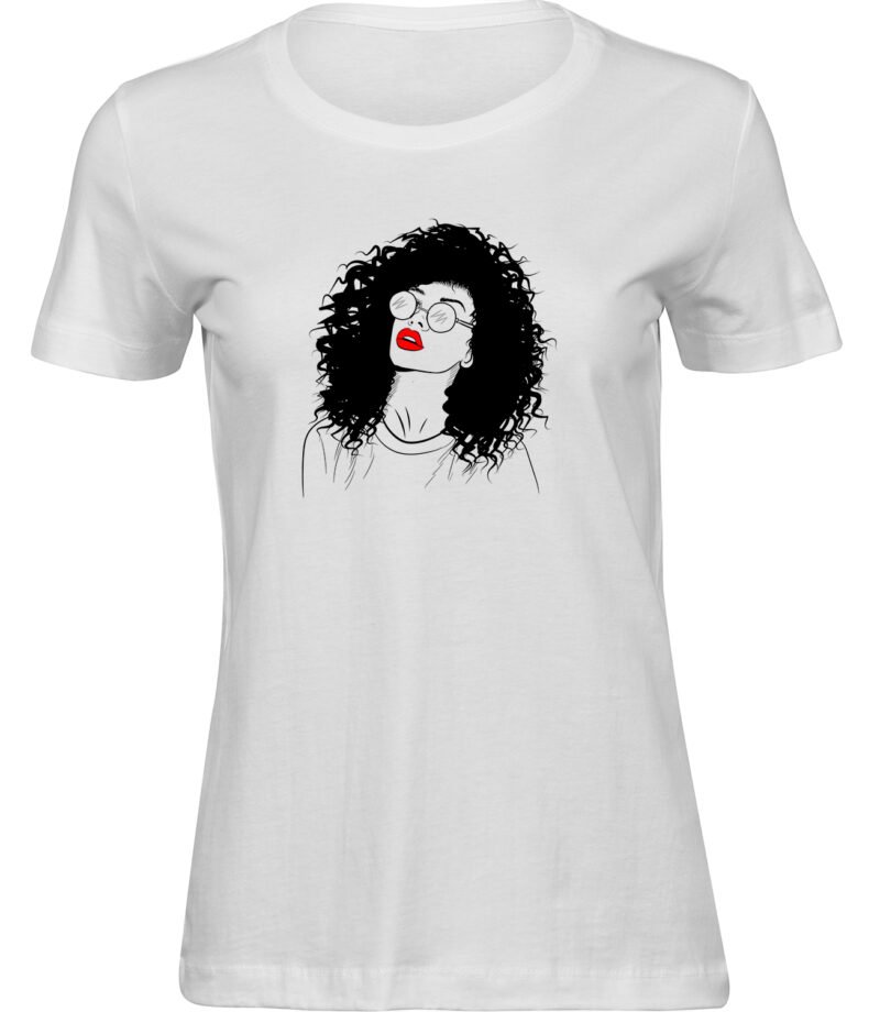 Stylisches Freizeit Frauen T-Shirt “LOCKIGE HAARE” – aus hochwertigem 100% Baumwolle Stoff.
