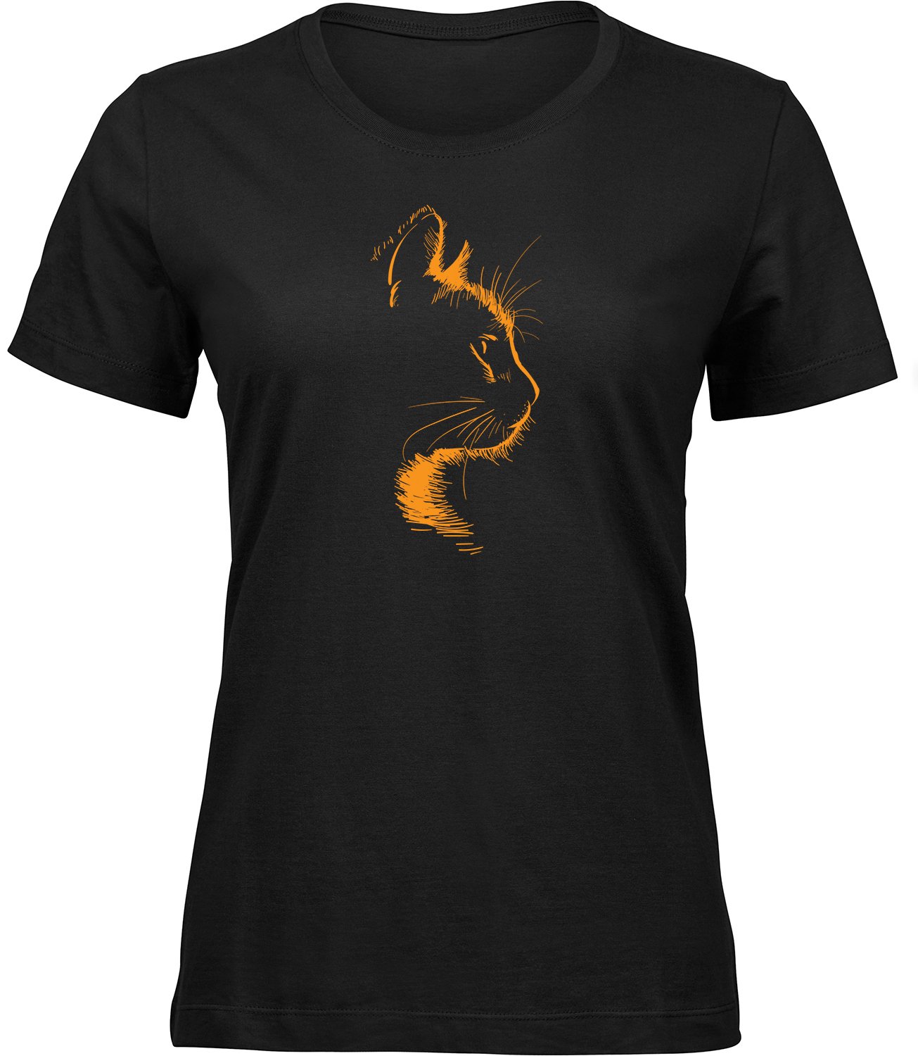 Stylisches Freizeit Frauen T-Shirt “NACHT KATZE” – aus hochwertigem 100% Baumwolle Stoff.