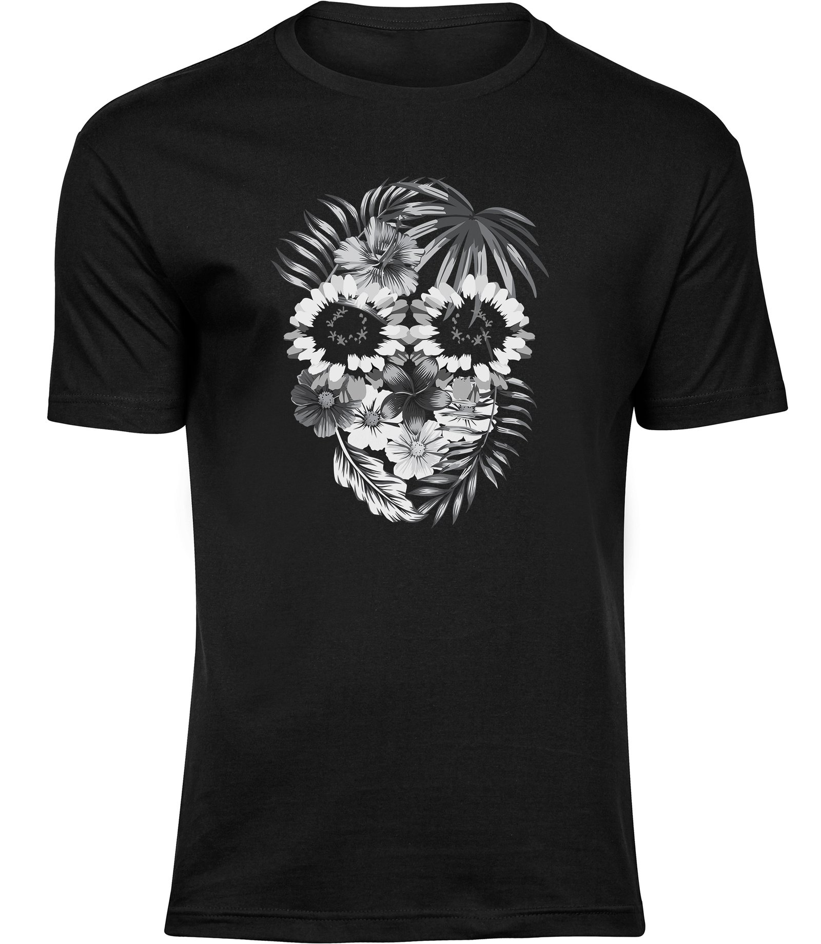 Stylisches Freizeit Herren TShirt “BLATTMOTIV SCHÄDEL” – aus hochwertigem 100% Baumwolle Stoff.